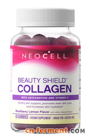 NeoCell就推出这款Beauty Shield™胶原蛋白软糖,主要成分是胶原蛋白、虾青素、余甘子提取物和维生素C,应用的健康方向是口服美容,不含麸质,无转基因,无人造甜味剂和色素。