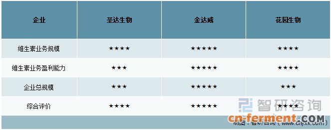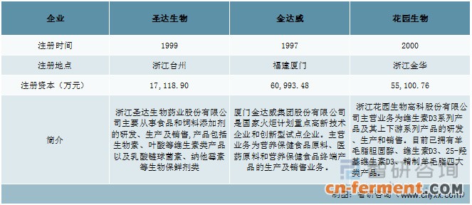中国维生素行业重点企业基本情况对比