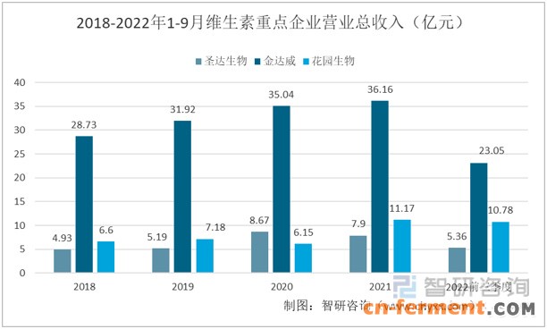 2018-2022年1-9月维生素重点企业营业总收入(亿元)