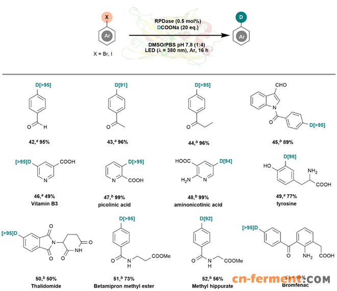 图2. RPDase催化制备生物活性分子的氘代衍生物
