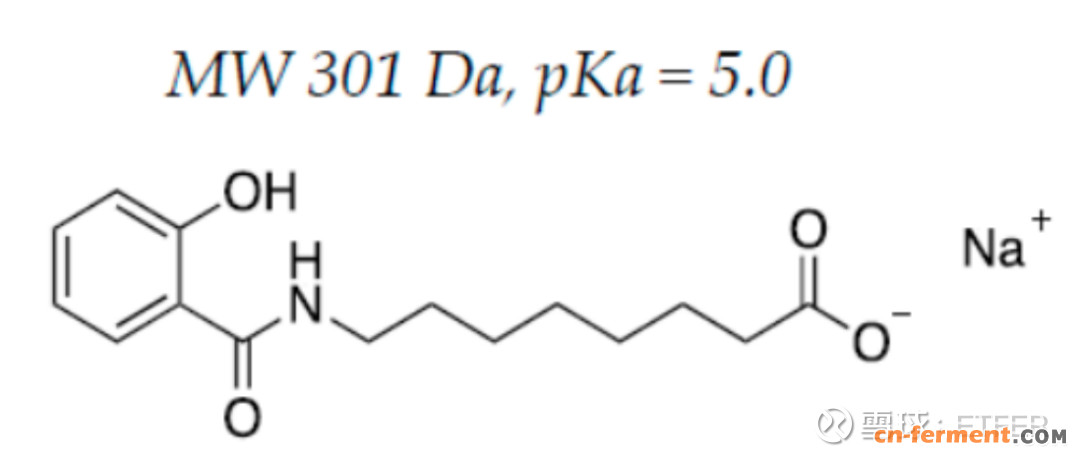 SNAC,又称N-(8-[2-羟基苯甲酰]-氨基)辛酸钠,是Emisphere公司在各种渗透促进剂中发现的一种化学合成的脂肪酸衍生物。其分子式为C15H20NNaO4,分子量为301Da。SNAC 等渗透增强剂已成为克服这些挑战的常用方法,司美格鲁肽口服片也是其最大的受益者。