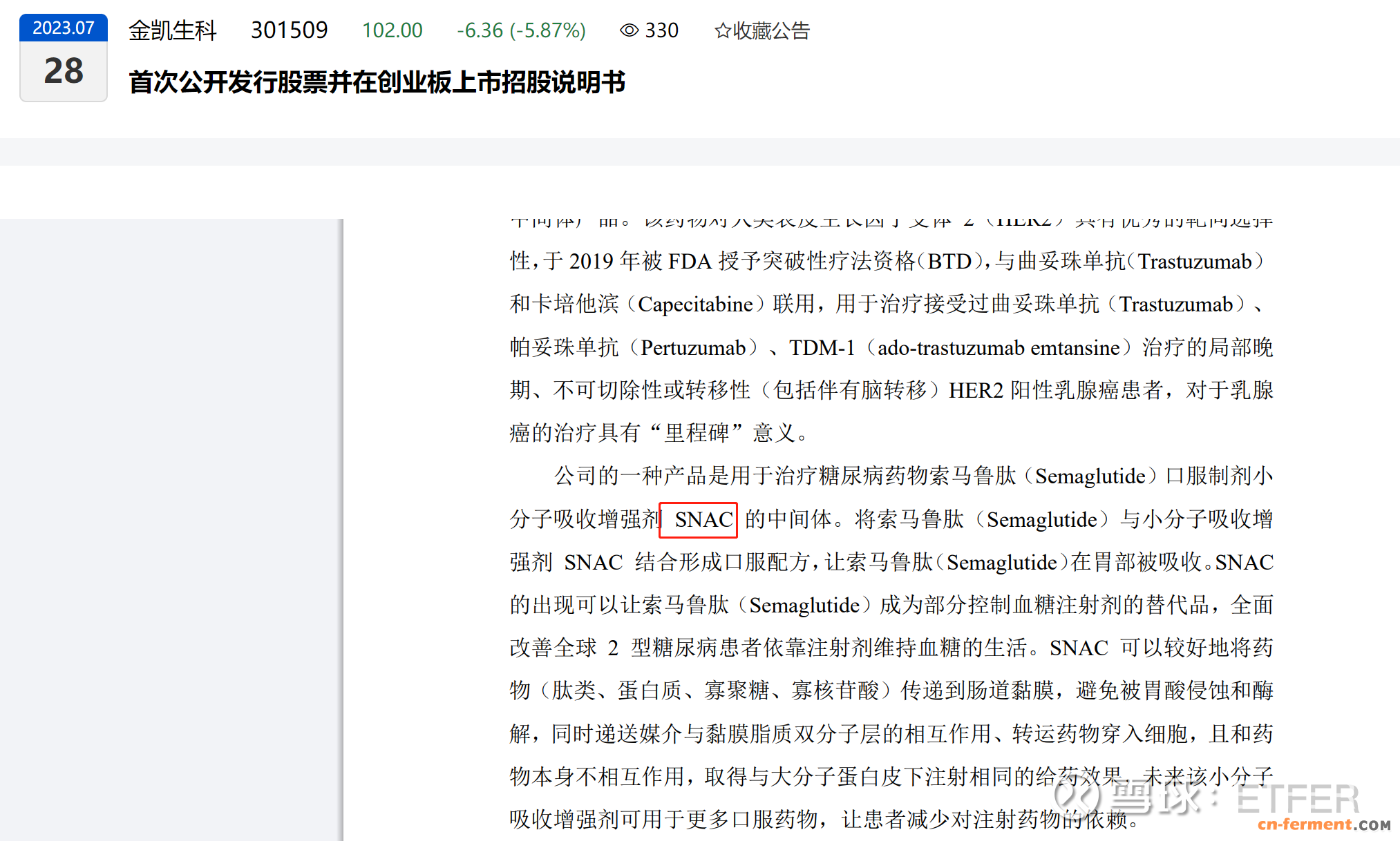 其中金凯生科8月7日互动平台表示:公司的一种产品是用于治疗糖尿病药物司美格鲁肽(Semaglutide)口服制剂小分子吸收增强剂SNAC的中间体。将司美格鲁肽(Semaglutide)与小分子吸收增强剂SNAC结合形成口服配方,让司美格鲁肽(Semaglutide)在胃部被吸收。SNAC的出现可以让司美格鲁肽(Semaglutide)成为部分控制血糖注射剂的替代品,全面改善全球2型糖尿病患者依靠注射剂维持血糖的生活。