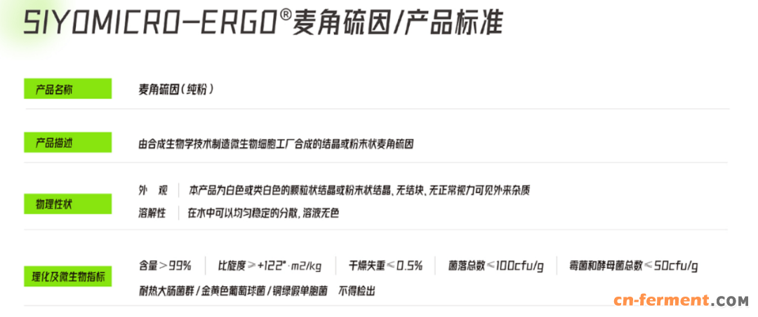 2021 年,中科欣扬通过对细胞硫元素循环进行优化,成功构建麦角硫因细胞工厂,将全球麦角硫因最高单位产量提升 4 倍,纯度大于99%。