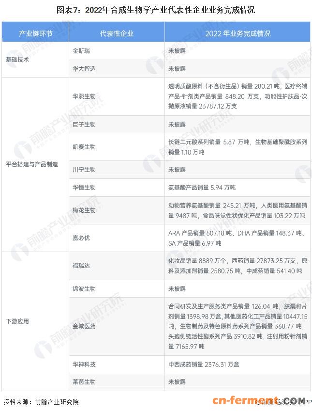 合成生物学产业代表性企业业务完成情况