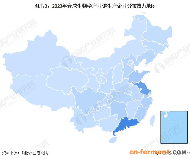 合成生物学产业链区域热力地图:广东与江苏分布最为密集