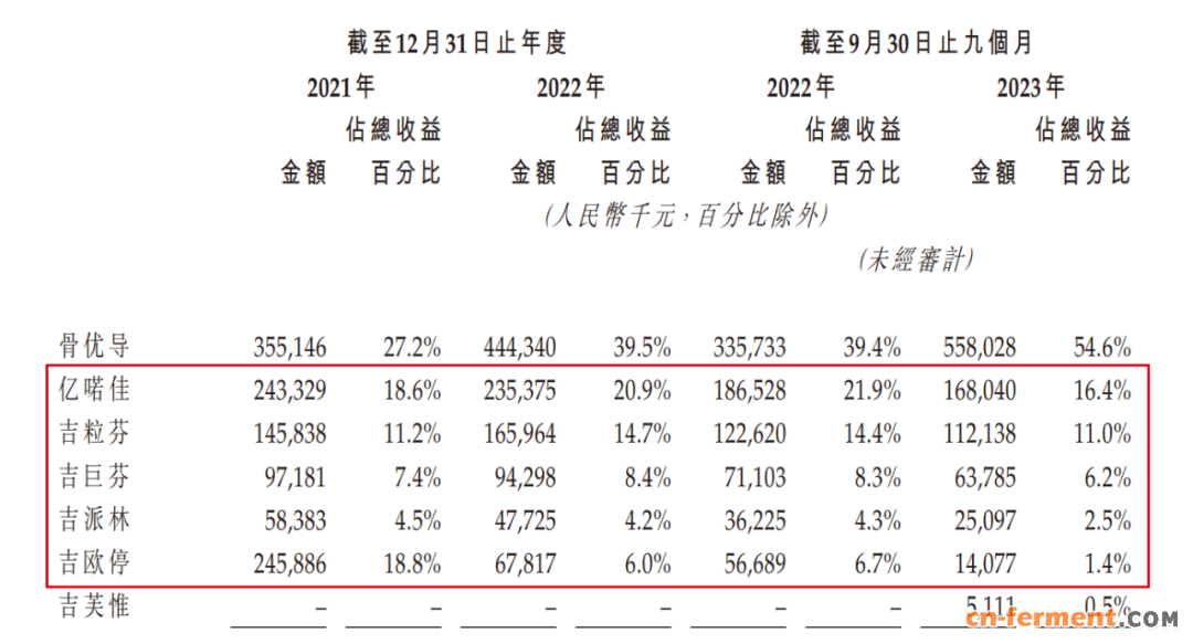 不仅如此,支撑九源基因半壁江山的骨优导产品同样来自于华东医药方面。招股书显示,于2023年前9月,骨优导产品为九源基因贡献了54.6%的营收。