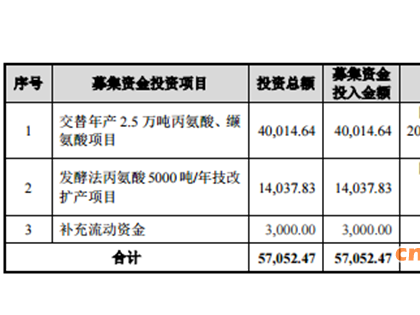 氨基酸11.5万吨/年,其中建设1条5万吨/年饲料级缬氨酸生产线、1条3万吨/年饲料级异亮氨酸生产线、1条2万吨/年饲料级