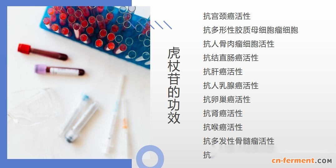 虎杖苷功能及其强大,具有多种生物活性,具有抗氧化、抗肿瘤、抗炎、神经保护、心脏保护和免疫调节等作用。虎杖苷是白藜芦醇的糖基化衍生物,较白藜芦醇有更高的水溶性、稳定性和抗氧化能力,同时相较于白藜芦醇具有更好的抗癌作用。