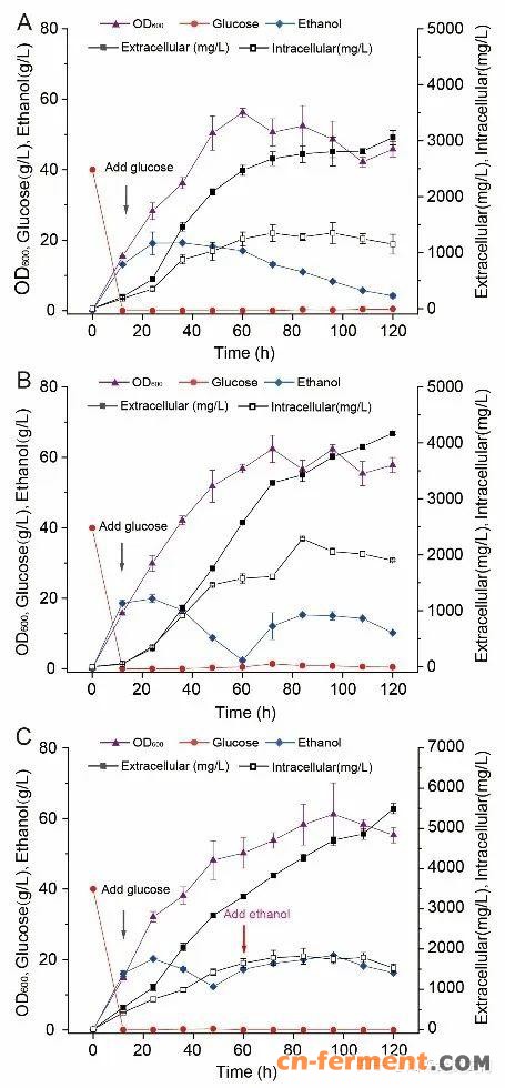 进行系统改造进一步提高(–)-α-红没药醇的产量(图4)。此外,还过表达内源转运蛋白提高(–)-α-红没药醇胞外分泌的效率(图5)。最后,在5 L发酵罐上对发酵过程中培养基成分优化,(–)-α-红没药醇的产量最终达到7.02 g/L(图6)。这是目前报道的真核生物合成(–)-α-红没药醇的最高产量,为(–)-α-红没药醇的生物合成提供了有益的参考。上述研究工作得到了国家自然科学基金项目(22208123)、江苏省博士后科研基金项目(2021K589C)和浙江大学上海高等研究院繁星科学基金项目(SN-ZJU-SIAS-0013)的资助。