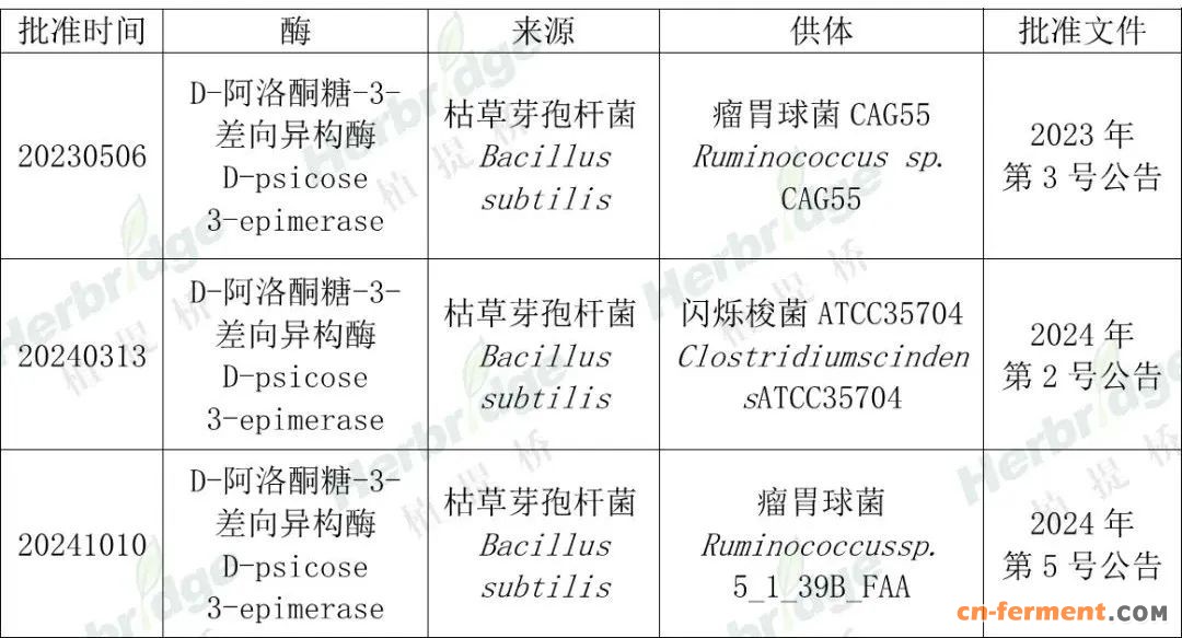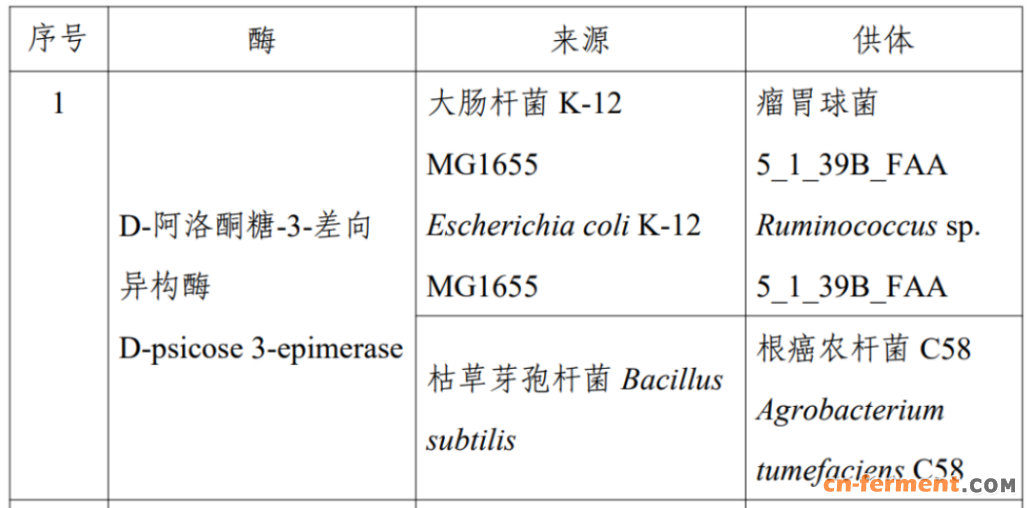 目前法规批准的D-阿洛酮糖-3-差向异构酶都是来源于枯草芽孢杆菌,但有3种不同的供体。