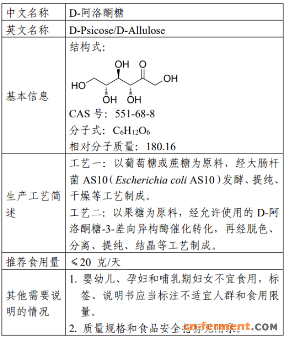 已经获批的3种D-阿洛酮糖-3-差向异构酶
