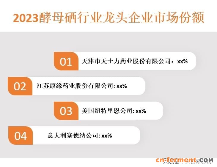 市场份额:酵母硒行业的市场份额主要由几家龙头企业占据,这些企业具有较强的生产和销售能力,能够满足市场需求。