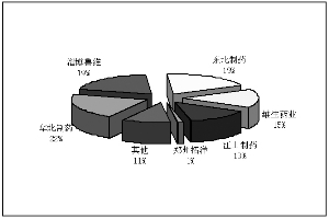2010年,我国维生素C出口日本市场数量排名前五位的企业为:维生药业、江山制药、东北制药、华北制药和天津美泰实业发展有限公司。其中华北制药市场份额下降幅度较大,2010年出口数量占比较2009年减少将近8个百分点。(见图6)