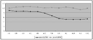 2010年伊始,受国内产能过剩影响,我国维生素C出口价格出现较大幅度下降,单价首次跌破9美元/公斤关口。上半年价格勉强维持在8美元/公斤以上,总体趋势是稳中有降。进入6月,国内扩建、再建企业的维生素C成品开始陆续面市,而业内翘首以待的行业整顿政策却迟迟未见动静,导致国内生产企业、国外客户心理恐慌,维生素C价格再次开始雪崩。仅上半年出口总量就同比增加了1.6万吨,相当于多了两个月的出口数量(见图1)。下半年维生素C出口价格呈自由落体式下跌,直至年底,受国家整顿维生素C行业政策即将出台的影响,价格止降并略有回升迹象(见图2)。而国外中间商利用价格处于低谷,开始大量屯货,从海关统计数据上看,去年下半年维生素C出口数量较同期增加了2万多吨。