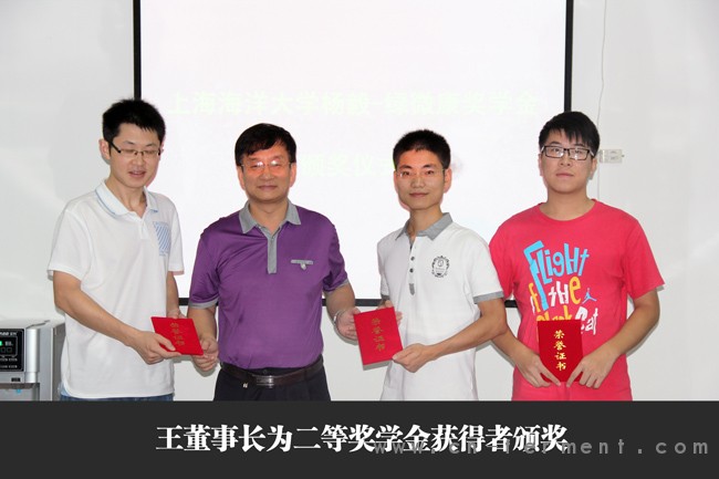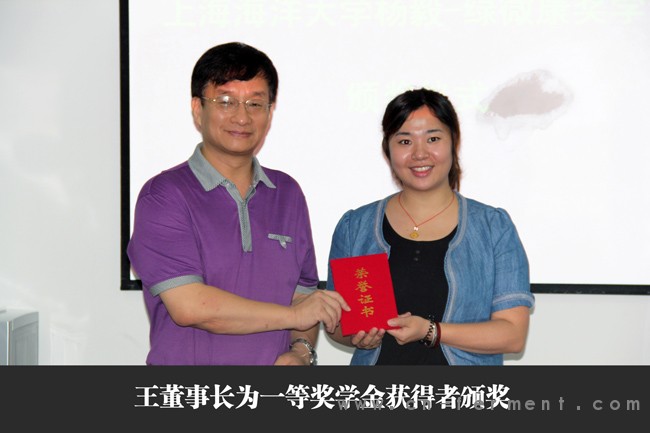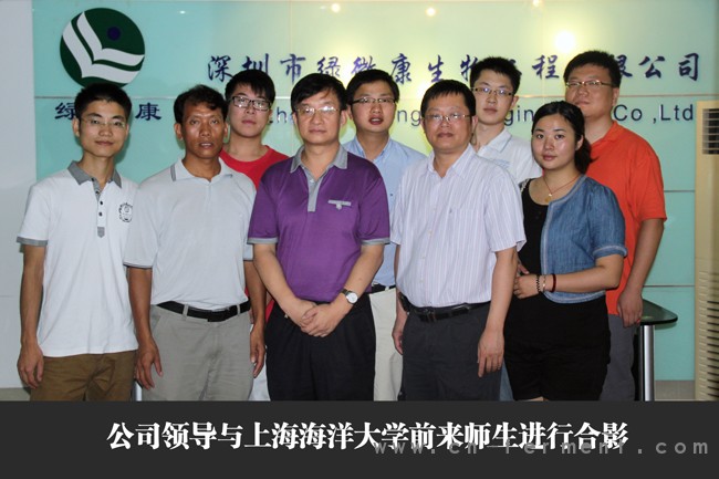 2012年7月26日上午9:30,上海海洋大学水产与生命学院张登沥书记带队,与上海海洋大学“绿微康~杨毅奖学金”获得者一行8人来到深圳市绿微康生物工程有限公司参观交流,公司董事长王剑英、副总经理张清辉和部分管理人员参加了座谈会,并为公司设立的上海海洋大学“绿微康~杨毅奖学金”获得者颁发获奖证书和奖学金。