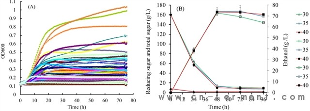 (A) 菊糖代谢酿酒酵母菌株筛选; (B) 不同温度菊芋粉发酵
