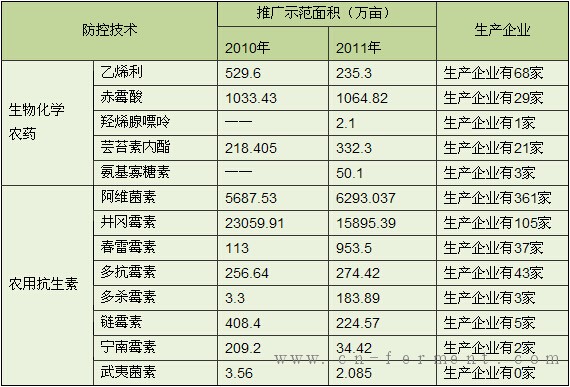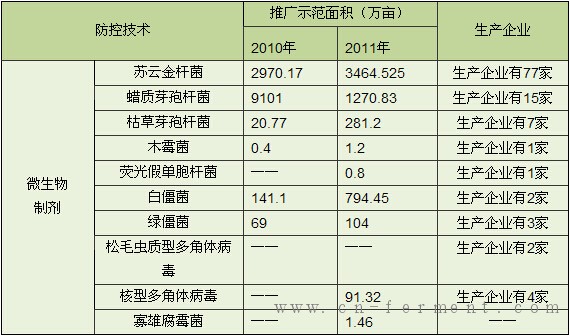 生物农药使用面积及相关企业情况