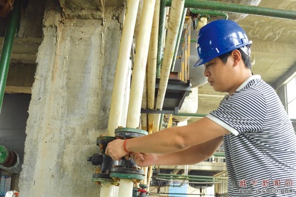 在徐州市华盛生物科技有限公司生产车间内,记者看到,企业的技术人员正在对母液管道进行检查,随着技术员对阀门用力一扳,哗哗的水流声随之传来。“只有能听到水流声,才能证明罐体内已经排空,下次才能启动正常生产程序。而如果罐体内物质没排净,就要对罐体进行重新排净,否则直接启动再生产程序就会造成安全事故。”