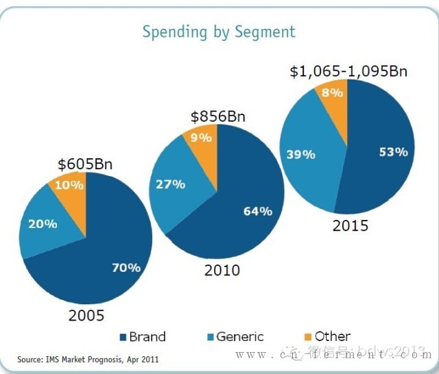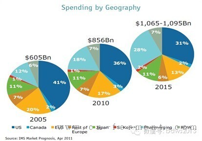 预计到2015年国家的新药支出达1500亿美元,大约增加一倍。占总支出来说。大于20%的指出来自品牌产品。