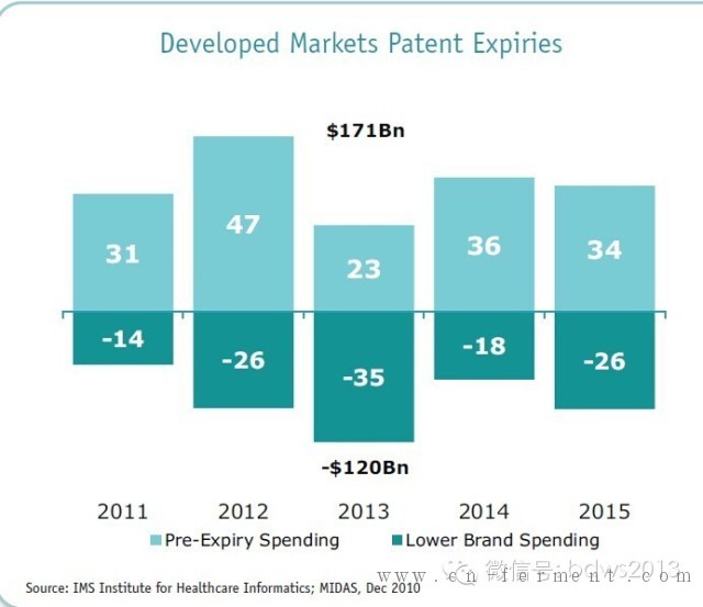 3、直到2015年专利药到期将减少品牌支出1200亿美元