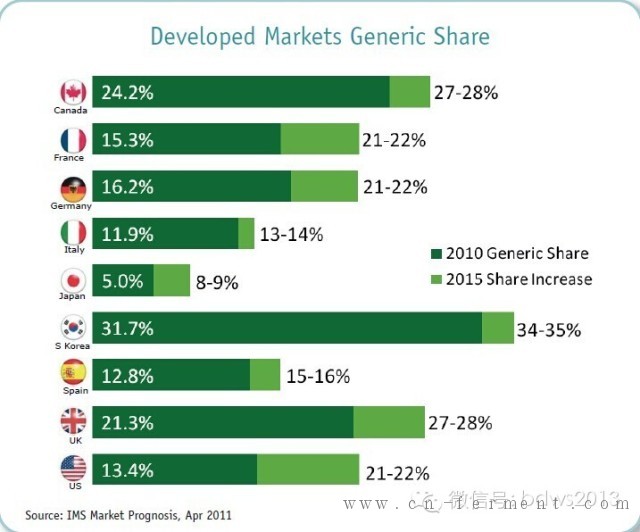 B、日本会以最低的非专利药市场份额来保持发达国家市场,尽管他们已经出台了对非专利药处方和分配的激励政策。