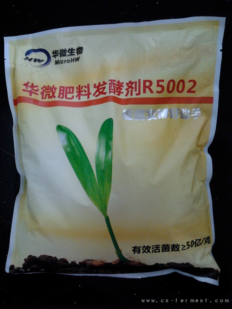 “R5002”是由从肥料发酵不同阶段分离提纯、驯化后培养而成的复合微生物菌剂,本品在使用过程中能分秘大量的蛋白酶、淀粉酶和纤维素酶,具备优良的腐熟和除臭功能。