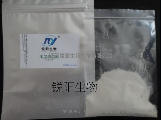 木瓜蛋白酶是采用生物工程技术从番木瓜植物未成熟的果实中提炼而得的纯天然生物酶制品,它是由212个氨基酸组成,分子量为21000,属于含巯基(—SH)肽链内切酶,具有蛋白酶和酯酶的活性,有较广泛的特异性,对动植物蛋白、多肽、酯、酰胺等有较强的酶解能力,同时还具有合成的能力,可把蛋白质水解物再合成蛋白质类物质,这种能力可用来改善动植物蛋白的营养价值或功能性质。