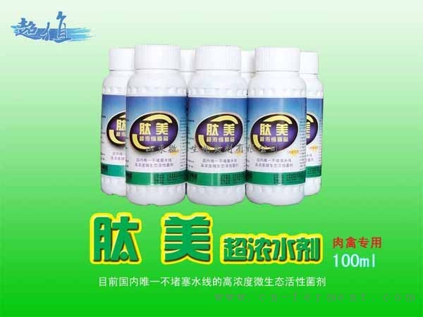 肽美是目前国内唯一不堵塞水线的高浓度微生态活性菌剂,产品由多种功能芽孢杆菌群和功能低聚糖组成。同一般生物制剂相比,具有性能稳定、功能齐全的优势,无任何激素成份,无任何毒副作用,在养殖应用上十分安全可靠。本产品适用于以养鸡、猪为主的养殖业生产等多种领域,通过调节肠道菌群的平衡,防治动物腹泻、下痢。