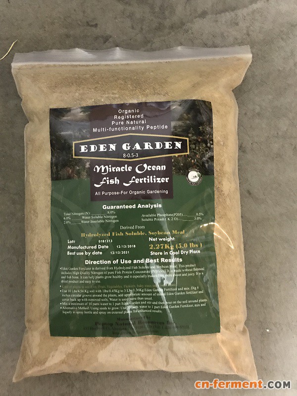 “伊甸园-神奇鱼肥”是一种新型奇特的家庭花果蔬菜用的有机肥料,原料来源于天然深海鱼溶浆(俗称“鱼胨”,不含鱼骨),经独特生物高科技处理配制。主要有效成分是活性肽(功能性小分子氮)以及具有生物调节功能的氮磷钾以及多种有效微量元素,能带动吸收土壤中原不能被利用的潜在养分,丰富平衡植物营养,可改善水果蔬菜的质地,使之胶质丰富甘甜爽口!
