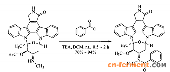 米哚妥林以星孢菌素为前体进行半合成而来,合成步骤简单收率高。