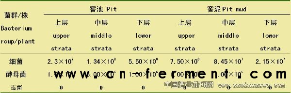 对窖泥而言,细菌总数为中层﹥下层﹥上层。酵母菌仅少量分布于中上层窖泥中,霉菌在宣酒芝麻香型白酒窖池池壁与窖泥中均没有被分离得出。