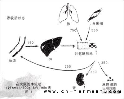 而关于在肠道吸收后状态下,谷氨酰胺在各器官间的正常流动见图3。