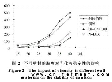 1)不同壁材的黏度对乳化液稳定性的影响