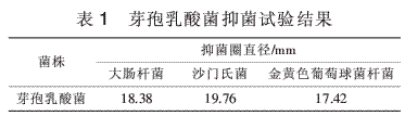 2.6芽孢乳酸菌的抑菌性试验结果