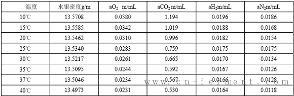 注:溶解数a是表示每毫升水在标准状况下所能溶解的气体毫升数