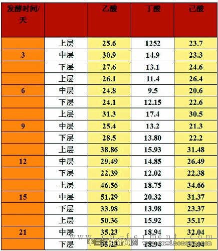 随着发酵过程的进行, 窖池中的水分(严格的讲,这里的水分也不完全是水了,还有酸、醇、酯等易挥发性物质)不断增加,前期糟醅上、中、下层水分含量基本一致,到发酵中后期,下层的水分普遍要比中、上层糟醅水分要高。