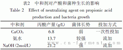 1.2.4.5 中和剂对混菌发酵产丙酸的影响