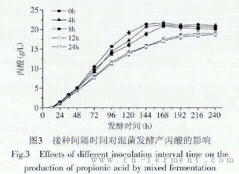 1.2.4.3 不同接种间隔时间对混菌发酵产丙酸的影响