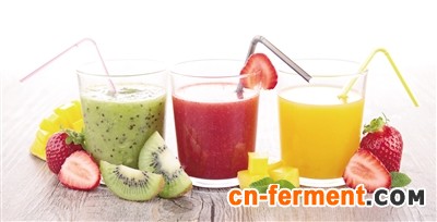 在果汁、悬浮饮料中的应用。与黄原胶相比,高酰基结冷胶具有优越的耐酸、耐盐性,pH 稳定范围广,在酸性果汁、非透明悬浮饮料中应用更能体现出这一优点,在酸性果汁中应用,要达到同样的稳定体系效果,高酰基结冷胶添加量仅有黄原胶的1/7~1/8,并且在饮料状态、口感上相比黄原胶都具有明显的优点。在悬浮有大颗粒果肉的饮料中,相比较其他几种有悬浮性能的胶体,高酰基结冷胶也具有很低的添加量,在不复配其他胶体的情况下仅有0.025%左右,并且相比较卡拉胶、果胶、瓜尔胶等,高酰基结冷胶在悬浮饮料体系中的pH 应用范围亦广,在酸性、中性悬浮饮料中都能应用。