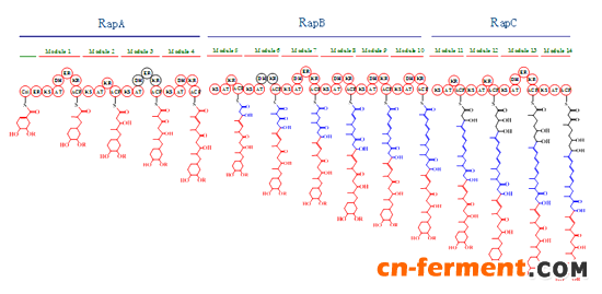 含有哌可酰基的含氮大环内酯类微生物代谢产物具有相似的生物合成途径,它们都属大环内酯类化合物,由典型的具有模块结构的 I 型聚酮合酶(Polyketide synthase, PKS)催化合成内酯环碳链骨架,由单模块的非核糖体肽合成酶(Non-ribosomal peptidesynthetase, NRPS)催化把哌可酸整合到内酯环骨架,并通过环化酶活性域使含哌可酰基的聚酮链内酯化从 KS/NRPS 杂合酶上脱离,最后通过一些列氧化酶、甲基转移酶等进行侧链基团的修饰形成最后的活性产物。