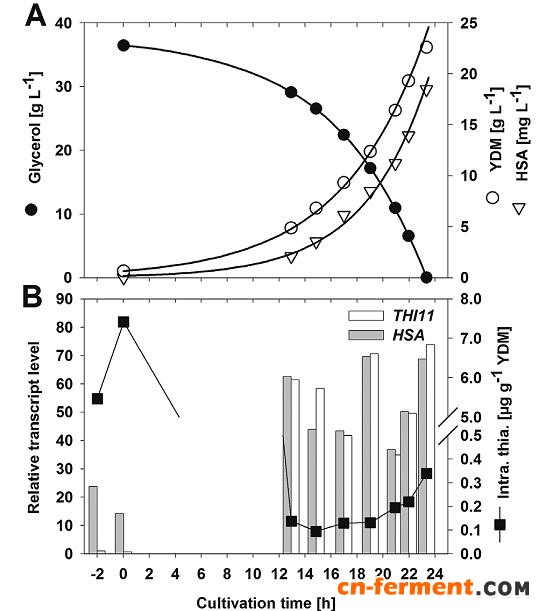 本篇文章描述了一个维生素敏感的调控序列,它可以受主要培养基成分,如碳,氮,或磷源的独立控制。PTHI11的启动子序列来源于参与生物合成的硫胺素基因,能够在毕赤酵母表达重组蛋白过程中起到调节作用。重组蛋白生产可通过外源添加一定量的硫胺素到培养基中得到抑制。为此,只有少量的维生素B1,是一种无毒、廉价易得的化合物是必需的。另一个PTHI11启动子的优势是对外源添加硫胺素的瞬时响应。因此,在某一时期的启动子活性和产品组成可通过外源抑制。一旦生物数量达到阈值,PTHI11就会在没有外部干预的情况下自动调节。