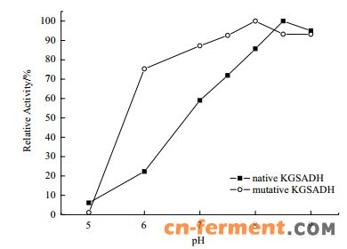| 图 5 pH对原始和突变KGSADH酶活力的影响 |