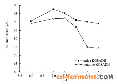 | 图 6 原始和突变KGSADH的pH稳定性 |