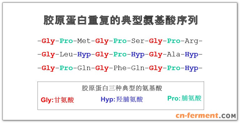 这三种氨基酸构成了胶原蛋白的典型螺旋结构,一般是具有Gly–X–Y的重复序列: