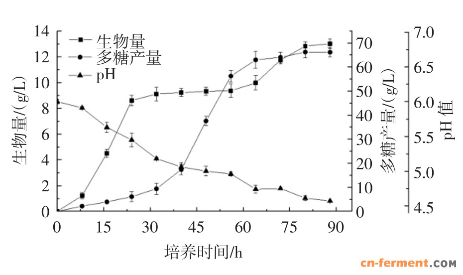 图2 初始pH6.0对普鲁兰多糖发酵的影响
