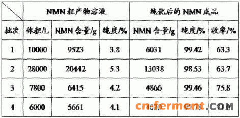 [0027] 对上述四批 NMN粗产物溶液的纯化过程如下: