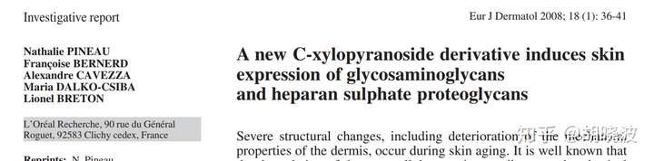 这大概就是玻色因的第一篇文献,在后面的所有文献中,玻色因的英文名都是C-Xyloside,而不是它的商品名Pro-Xylane。