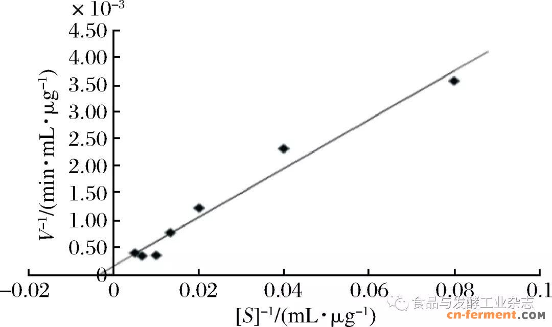 图6 固定化α-L-鼠李糖苷酶的Lineweaver-Burk图