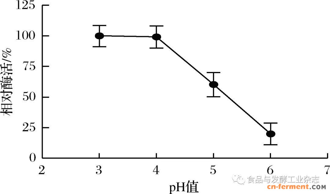 图5 不同pH对固定化α-L-鼠李糖苷酶活力的影响