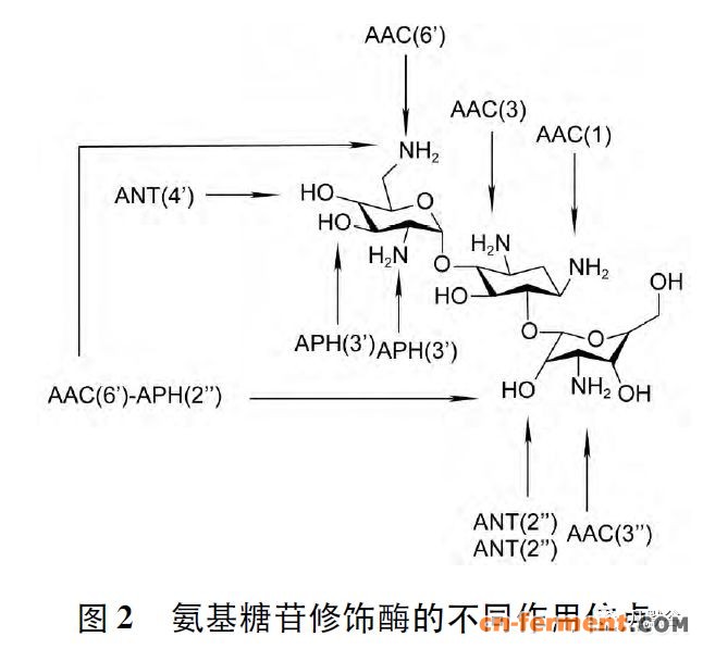 随着细菌对氨基糖苷类化合物吸收的减少以及各种氨基糖苷修饰酶的出现,氨基糖苷类药物的效果大幅度降低,尤其是氨基糖苷修饰酶在耐药过程中发挥了极大的作用[19]。